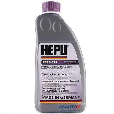 Фиолетовый концентрат антифриза HEPU G13 P999-G13 (Германия) класса G13 с температурным режимом -38°C и объемом 1,5 литра. Является концентратом, предназначен для смешивания с дистиллированной водой. Концентрированная охлаждающая жидкость универсального применения. Защищает от замерзания, перегрева, коррозии и образования известкового налёта. Предназначена для алюминиевых и чугунных двигателей. Не содержит нитритов, аминов и фосфатов.